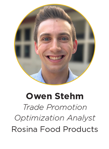 Owen supports Rosina Food Products in evaluating and optimizing trade promotion spend across key retail partners. He began at Rosina as a Customer Engagement intern and, in 2025, transitioned to the Trade Analytics team. He chairs SECURE, a committee focused on strengthening safety, engagement, and communication, and is a member of Rosina’s Business Process Advisory Committee. Owen holds a bachelor’s degree in accounting from Niagara University and resides in Buffalo, NY.